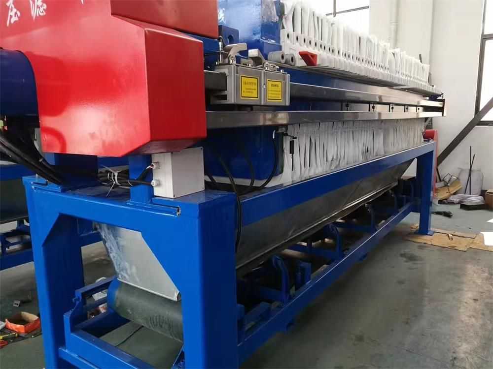 全自動(dòng)廂式壓濾機(jī)與普通廂式壓濾機(jī)的不同之處在于多了自動(dòng)拉板系統(tǒng),自動(dòng)接液翻板,自動(dòng)清洗濾布等系統(tǒng)。使設(shè)備操作更加智能化自動(dòng)化。整機(jī)結(jié)構(gòu)設(shè)計(jì)科學(xué)合理,機(jī)械強(qiáng)度高、結(jié)構(gòu)穩(wěn)固、經(jīng)久耐用并且便于操作和維護(hù)。
